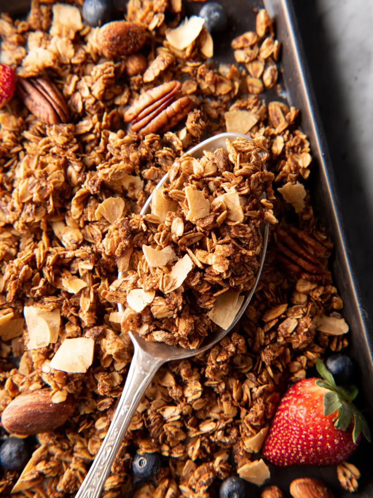 Store Properly: Once cool, transfer your granola into an airtight container to maintain freshness. It can last for up to two weeks – if it lasts that long!