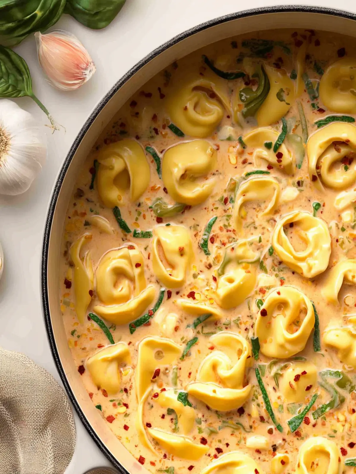 Tortellini: The star of the show! Fresh or frozen tortellini—filled with cheese, spinach, or any filling you prefer—makes this recipe so convenient and comforting.