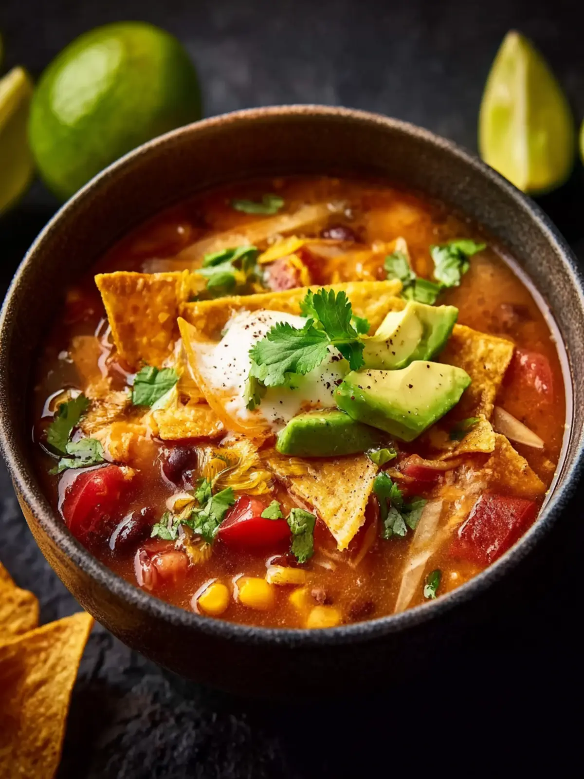 - Ladle the soup into bowls and top with crushed tortilla chips, sliced avocado, shredded cheese, sour cream, and fresh cilantro—whatever your heart desires. This is where the soup goes from simple to spectacular.