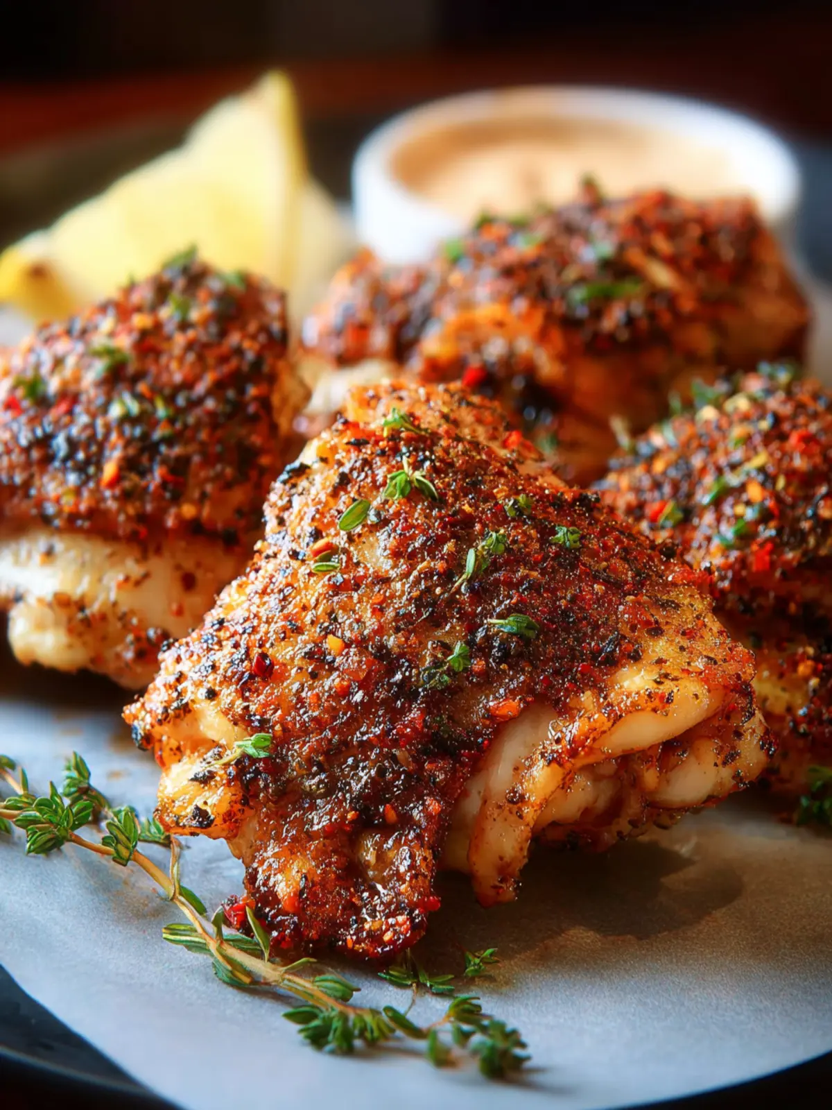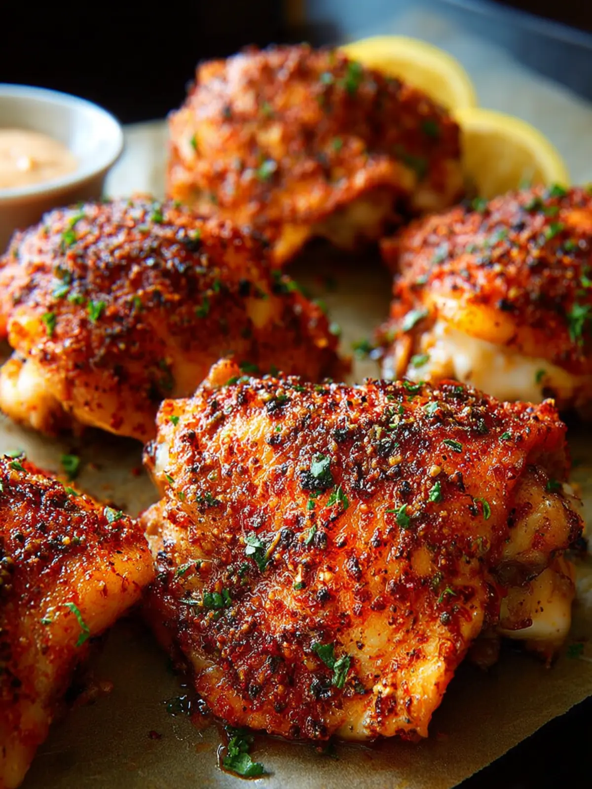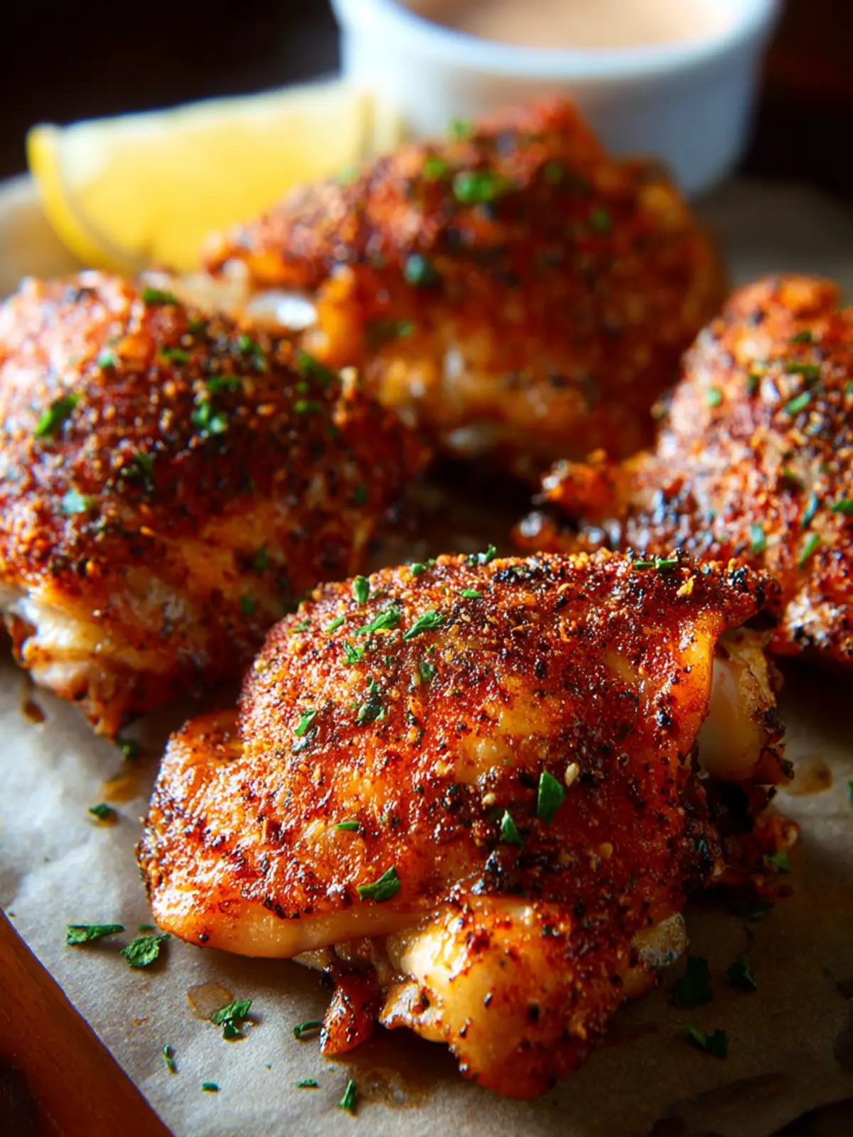Delicious and crispy air-fried chicken thighs seasoned to perfection.
