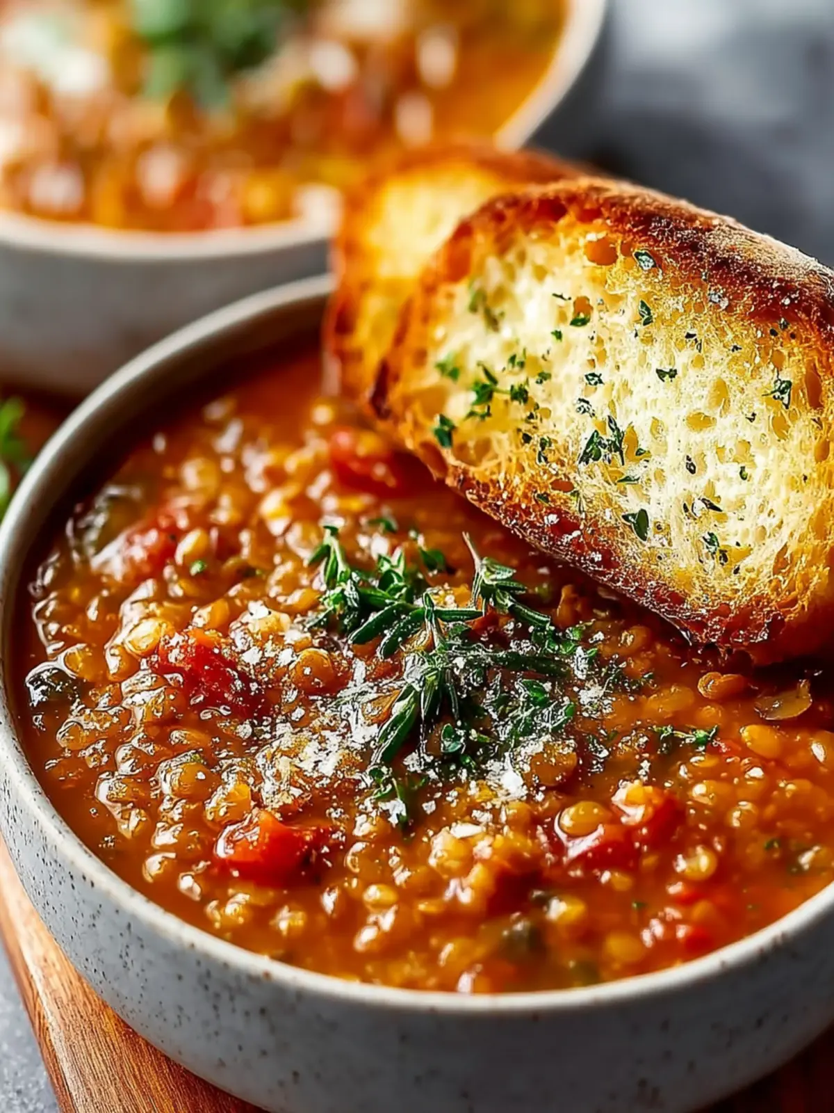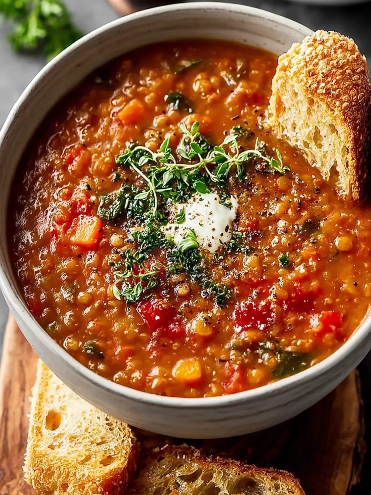 A delicious and hearty lentil soup packed with vegetables and flavor.