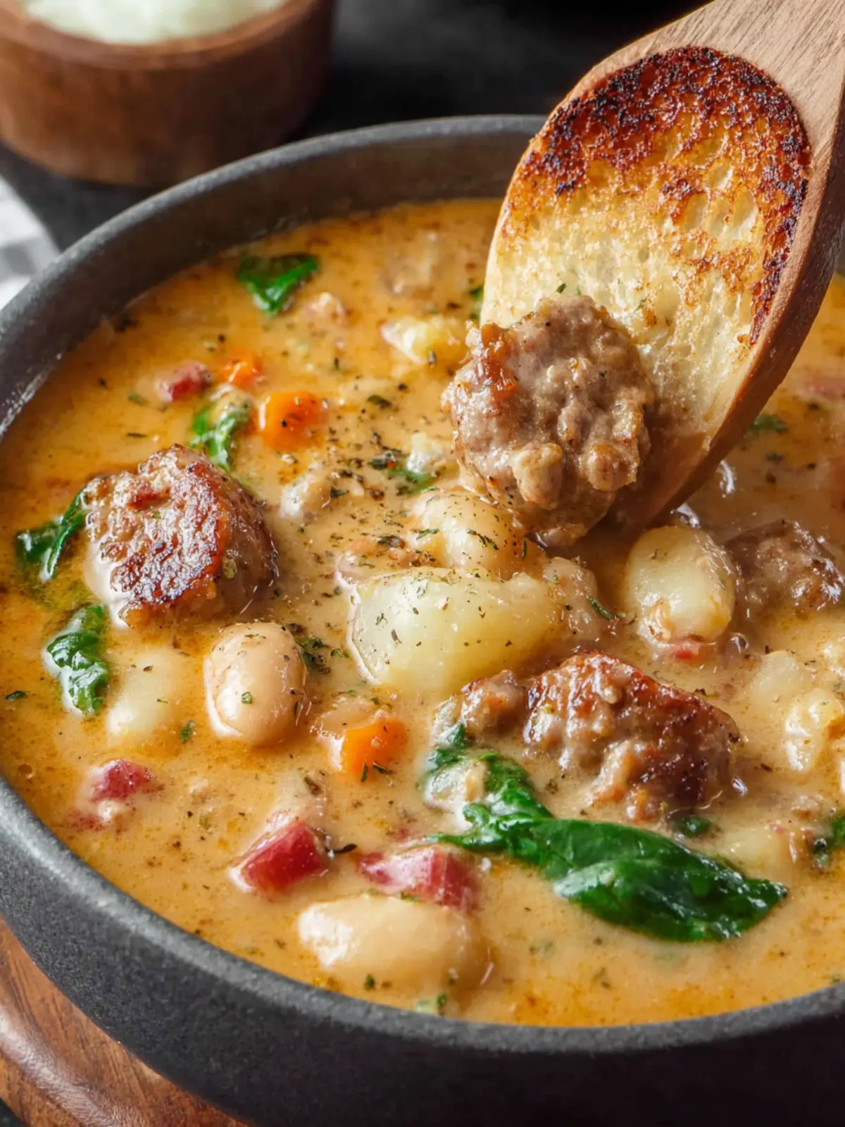 A delicious and filling soup made with Italian sausage, vegetables, and creamy goodness.