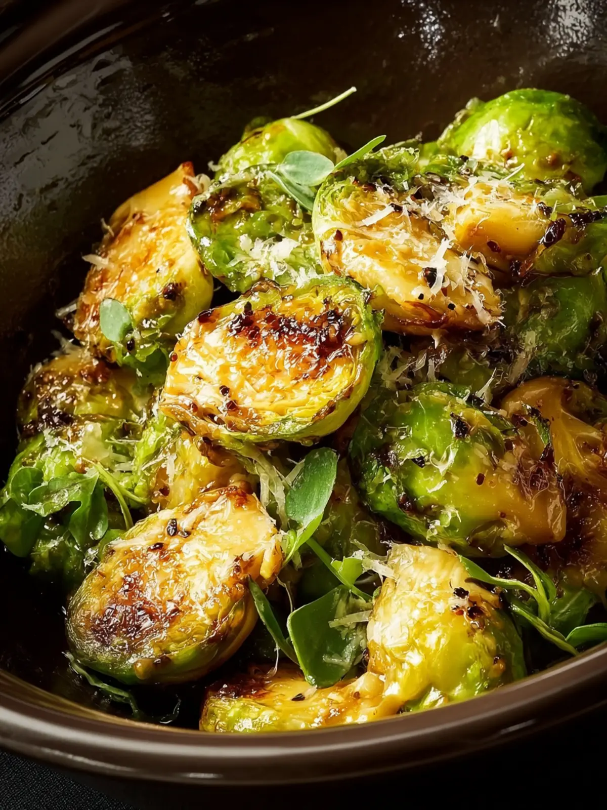 Flavor Development: The slow cooking process allows the sprouts to caramelize and develop a deep, rich flavor that’s further enhanced by the addition of Parmesan. As the cheese melts and mingles with the garlic and butter, you’ll find yourself more connected to your food than ever.