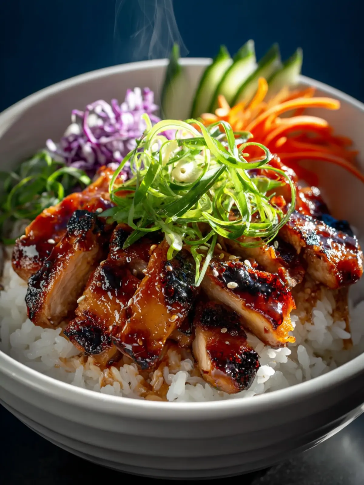 8. Assemble Your Bowls: Grab your favorite serving bowls. Start with a generous scoop of warm, fluffy rice at the bottom. Arrange the grilled teriyaki chicken pieces over the rice. Add your prepared vegetables next to the chicken.