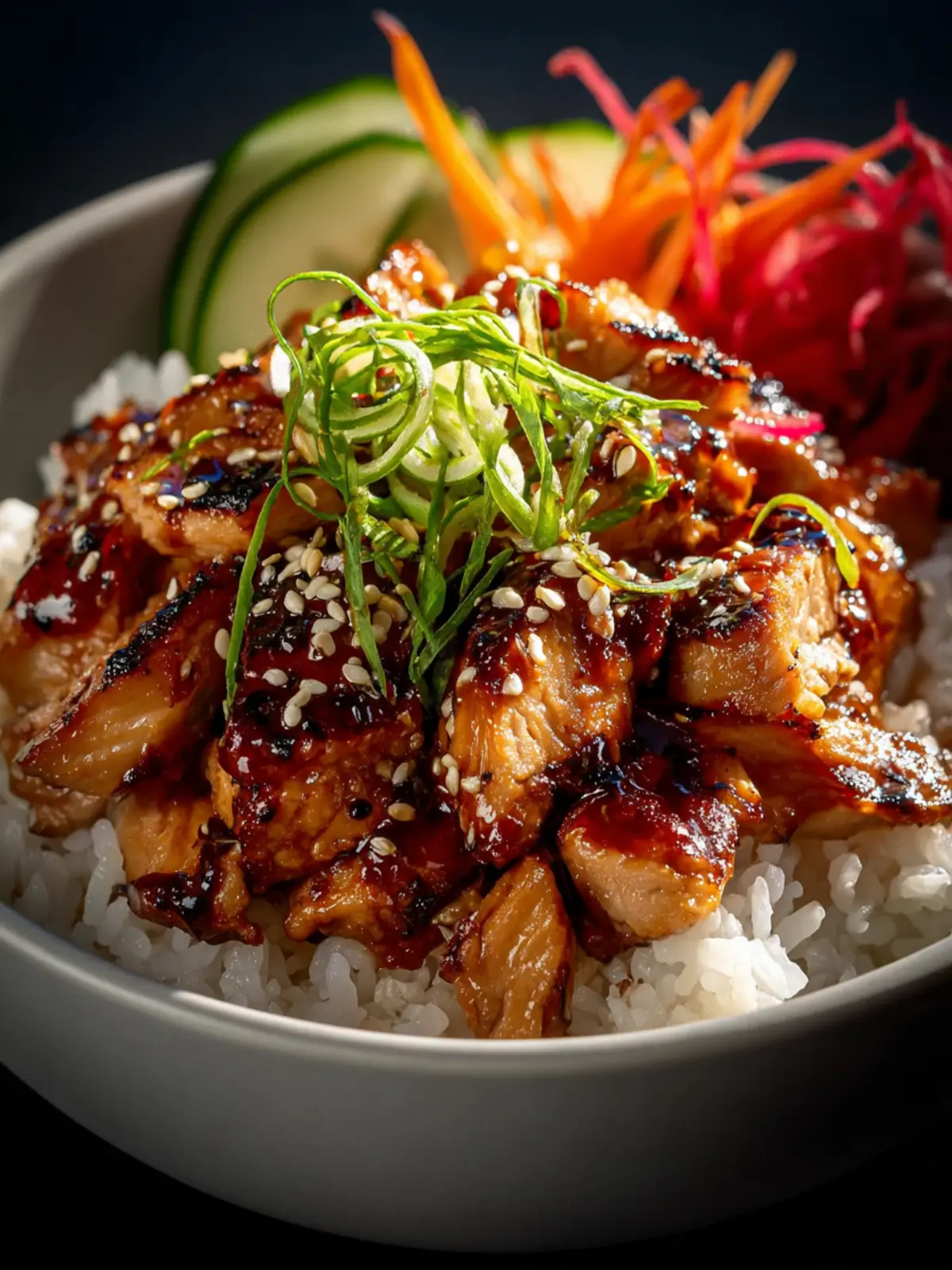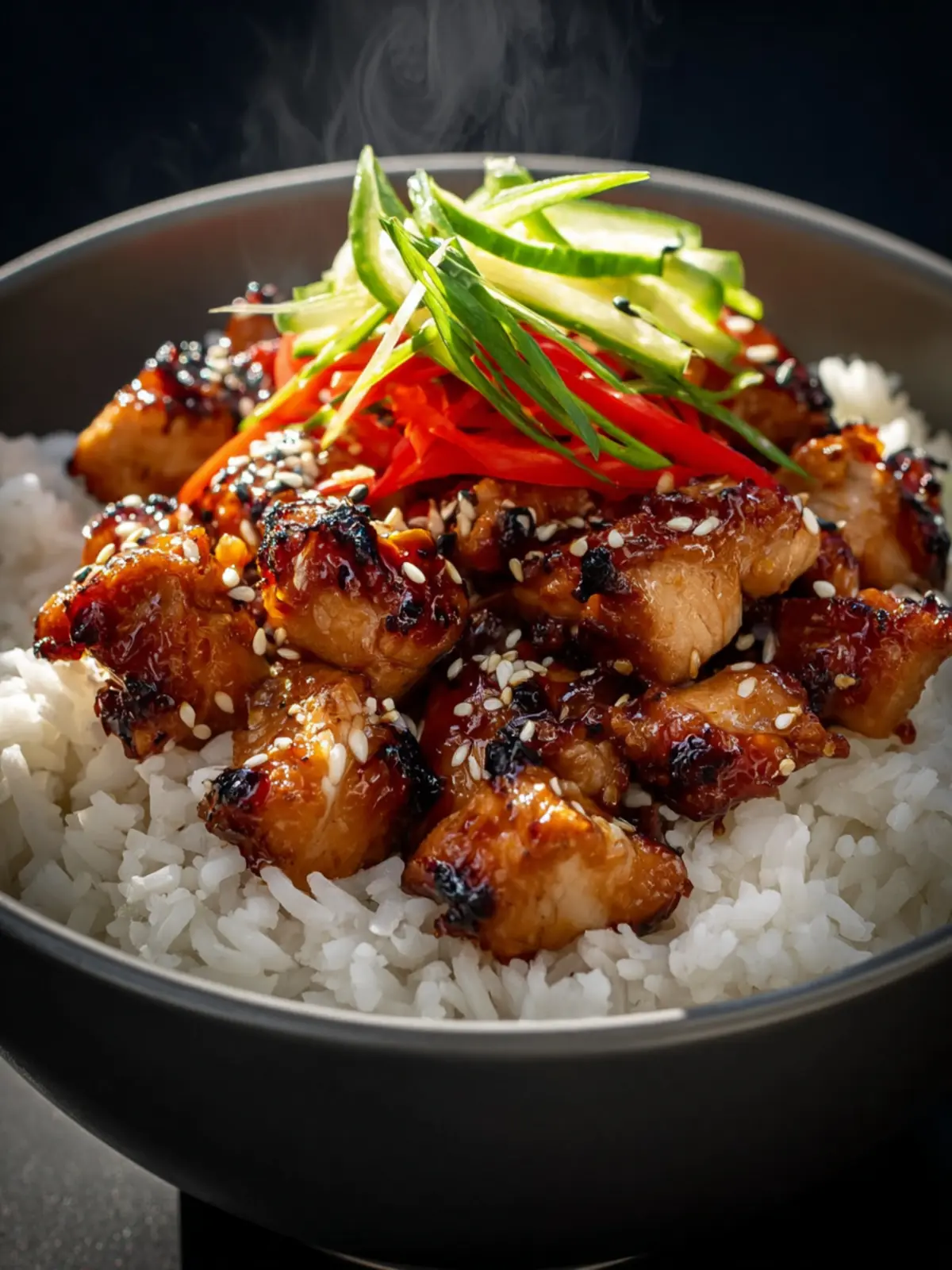 • Toppings: Sesame seeds and green onions bring an extra layer of flavor and make your teriyaki chicken rice bowl visually appealing. Don’t skip them!